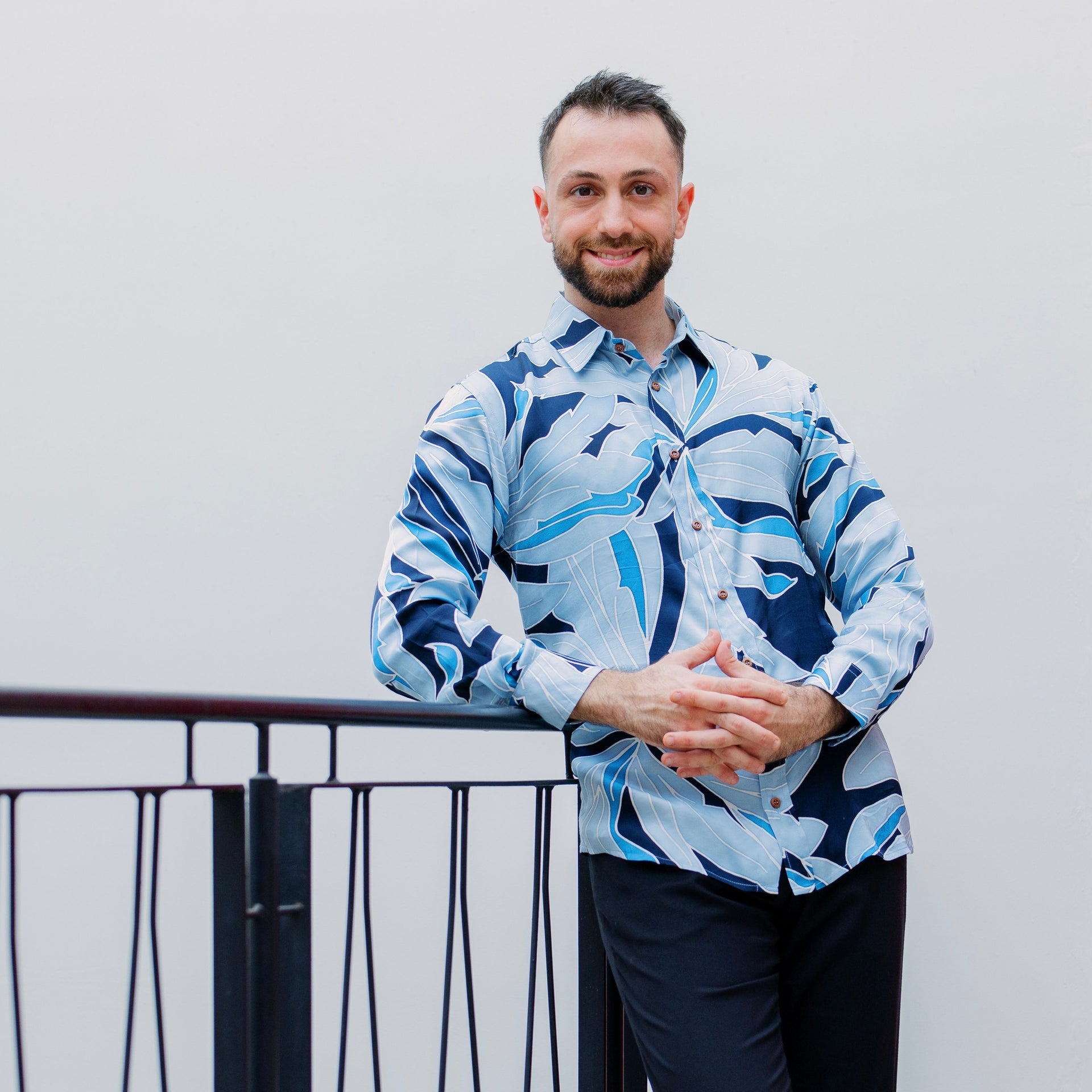Introducing our Palma shirt in a NEW colorway. The Moonlight Palma is now available in a long-sleeved men's batik shirt.