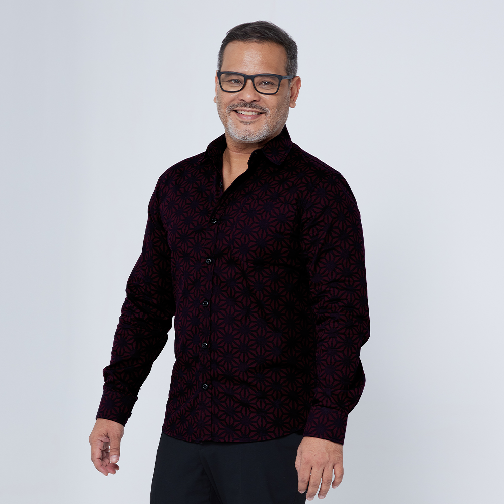 (SALE) Men's Long-Sleeved Batik Shirt - Garnet Firework