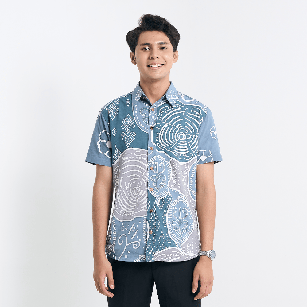 (SALE) Men's Modern Batik Shirt - Slate Petola